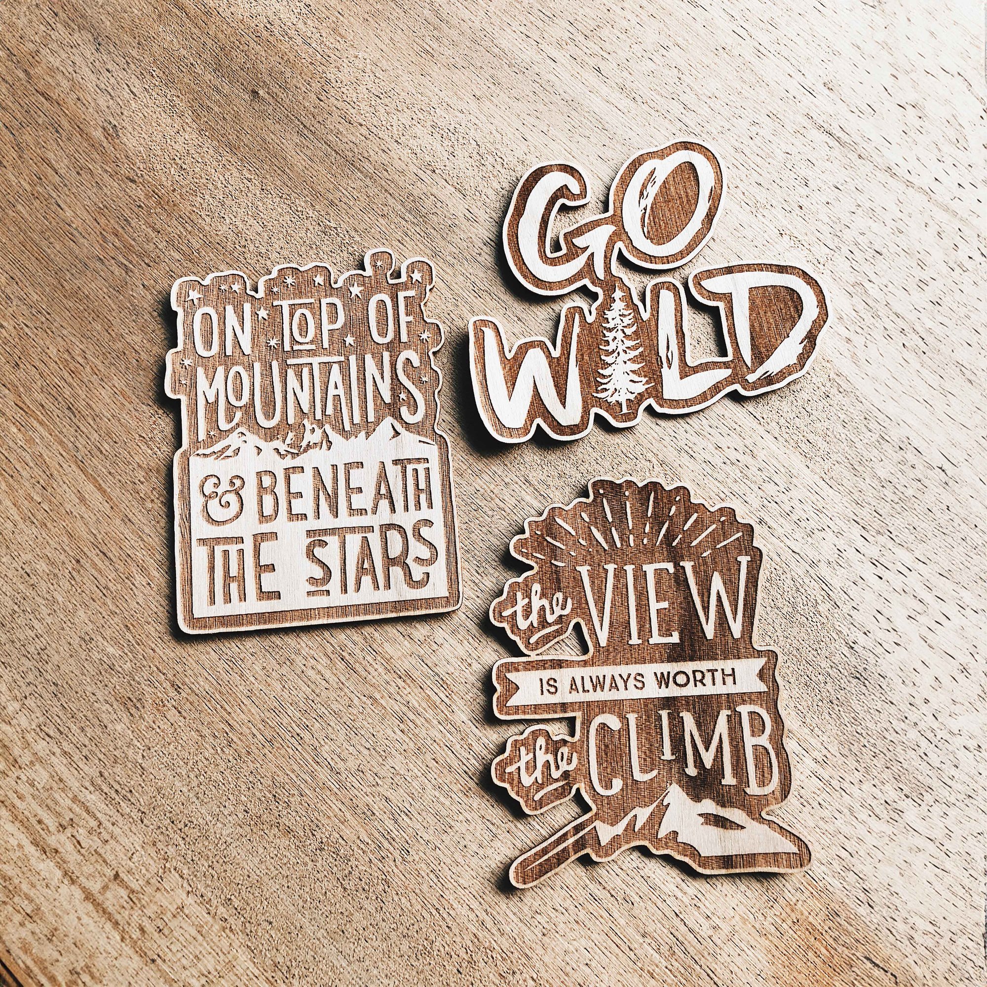 embrace your adventurous side with this typographic style wooden sticker